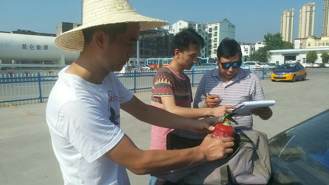 重點檢查車輛是否漏氣,電路和滅火器。對駕駛員私自改裝進行整改。要求駕駛員認真學習公司制定的《出租汽車駕駛員消防安全須知》并簽字。在6月安全生產月已經完成的消防安全培訓及演練的基礎上,進一步加強駕駛員消防安全意識,強化駕駛員發(fā)生車輛火災的應急自救能力。