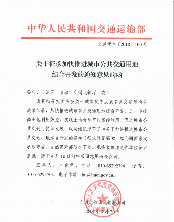 關(guān)于征求加快推進(jìn)城市公共交通用地綜合開發(fā)的通知意見的函
