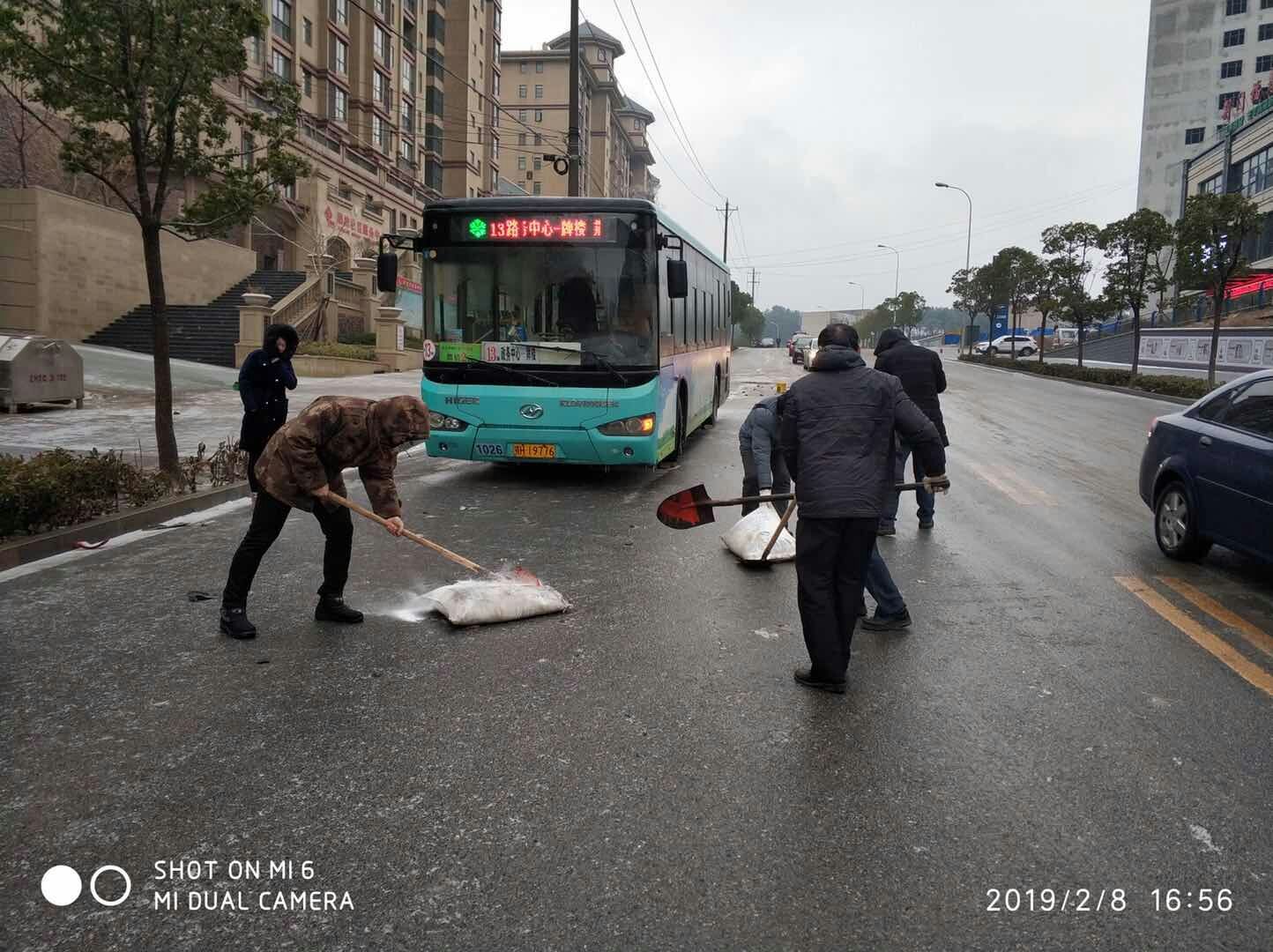 大年初四,降下風雪,荊門公交集團為保障公交平安運行,公司領導的帶頭,放下了團年的飯桌上的碗筷,換成鐵鍬加入到除雪隊伍中來。他們不懼嚴寒,從下午13點堅持到18點,完成了福壽居、房產(chǎn)局、天鵝路等路面撒鹽除冰任務。