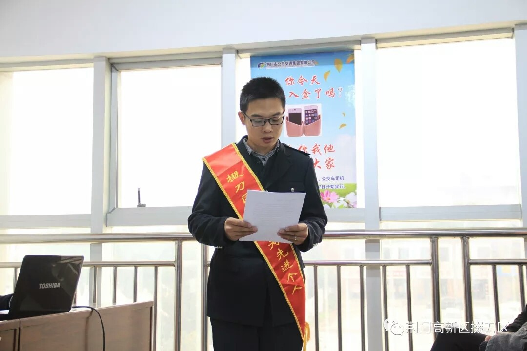 在當天的表彰大會上,荊門市高新區(qū)·掇刀區(qū)政法委副書記朱曉紅、市公交集團有限公司副總經(jīng)理張忠林還分別結(jié)合“10·28重慶萬州公交車墜江事故”要求廣大公交駕駛員遵守職業(yè)道德,如何理性對待無理取鬧的乘客,遠離負能量的人。表揚聶聰聰在他人的財產(chǎn)找到嚴重危害時,義不容辭的出手相救,有效避免了他人重大財產(chǎn)損失,并號召要以身邊的時代楷模聶聰聰為榜樣,學(xué)習(xí)聶聰聰奮不顧身、見義勇為的高尚品質(zhì),要大力宣傳宣傳見義勇為先進,以先進的事跡感染人、吸引人,以崇高的精神激勵人、鼓舞人,用實際行動傳遞社會正能量,為平安掇刀創(chuàng)建作出新的貢獻。