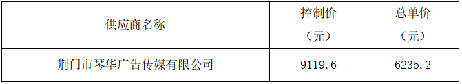 荊門市公共交通集團有限公司2024年廣告開展設(shè)計制作類年度供應(yīng)商采購項目進行了詢價,經(jīng)詢價小組評審?fù)扑],現(xiàn)將本次詢價的成交結(jié)果公布如下: